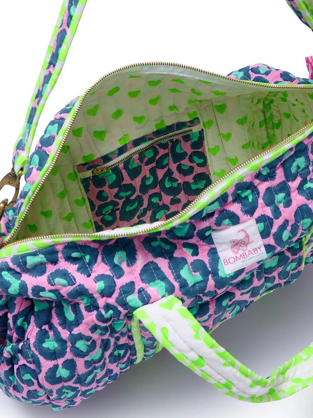 The Glamazon quilted weekend bag is anything but ordinary. Our exclusive animal block print splashes bold pinks, purples, and vibrant turquoise across a quilted body, finished with signature neon piping and a neon heart-print lining. Boho-luxe with a rebellious streak, this bag doesn’t whisper style, it announces it.