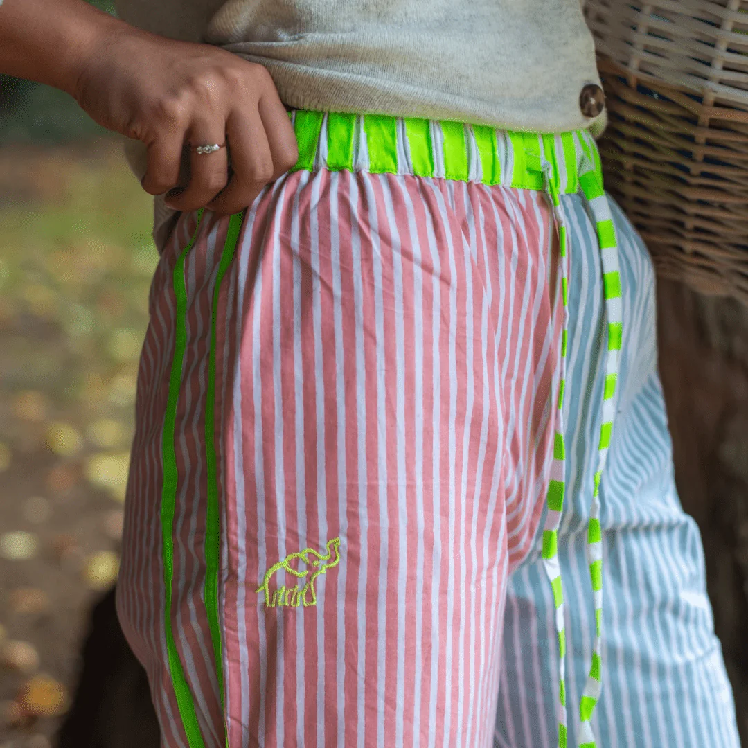 Don’t be fooled by the softness - The Pop Trousers in Sunwashed are quietly subversive. Crafted from premium cotton poplin and drenched in pastel pink, blue and flashes of neon yellow, these trousers channel the calm after the chaos. Designed by Sarah and lovingly handmade in Jaipur, they’re proof that comfort can still turn heads.